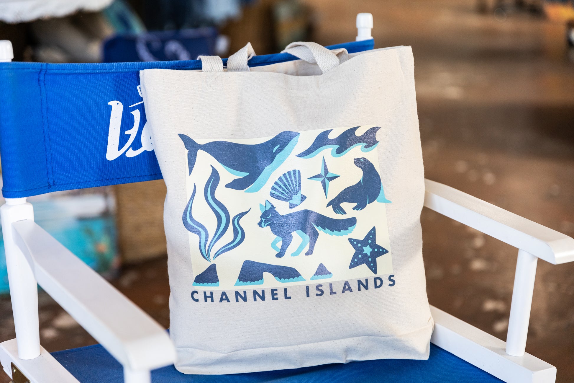 Channel Islands National Park tote, student-made as part of the Vision to Marketplace program. Features the Visit Ventura ambigram logo on the reverse side.