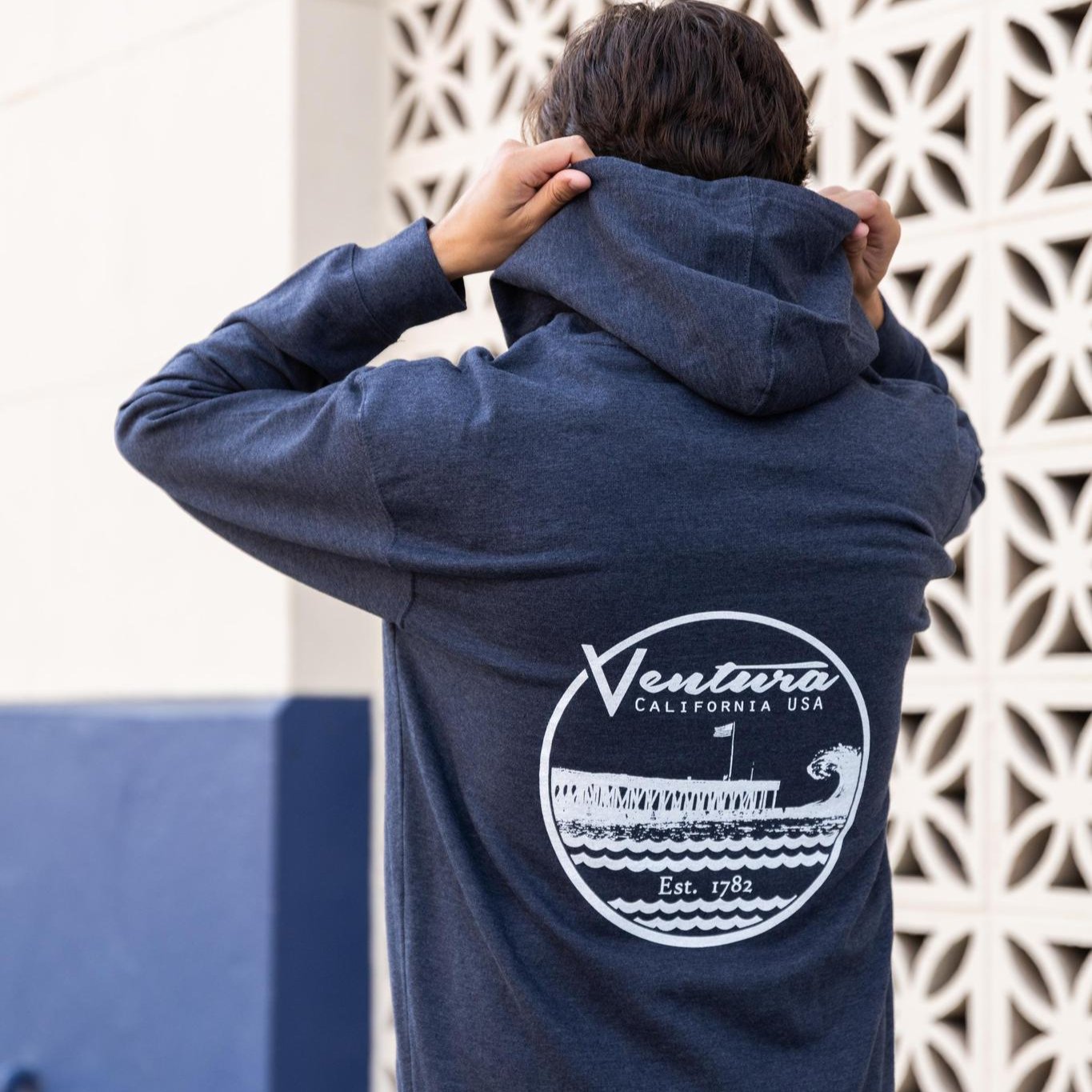 Visit Ventura is proud to partner with Carlifornia Cut and Clark Song on these sweatshirts featuring his classic pier design and our equally classic ambigram logo. Song’s dedication to craft and local heritage makes him a distinctive voice in Ventura’s artistic community.