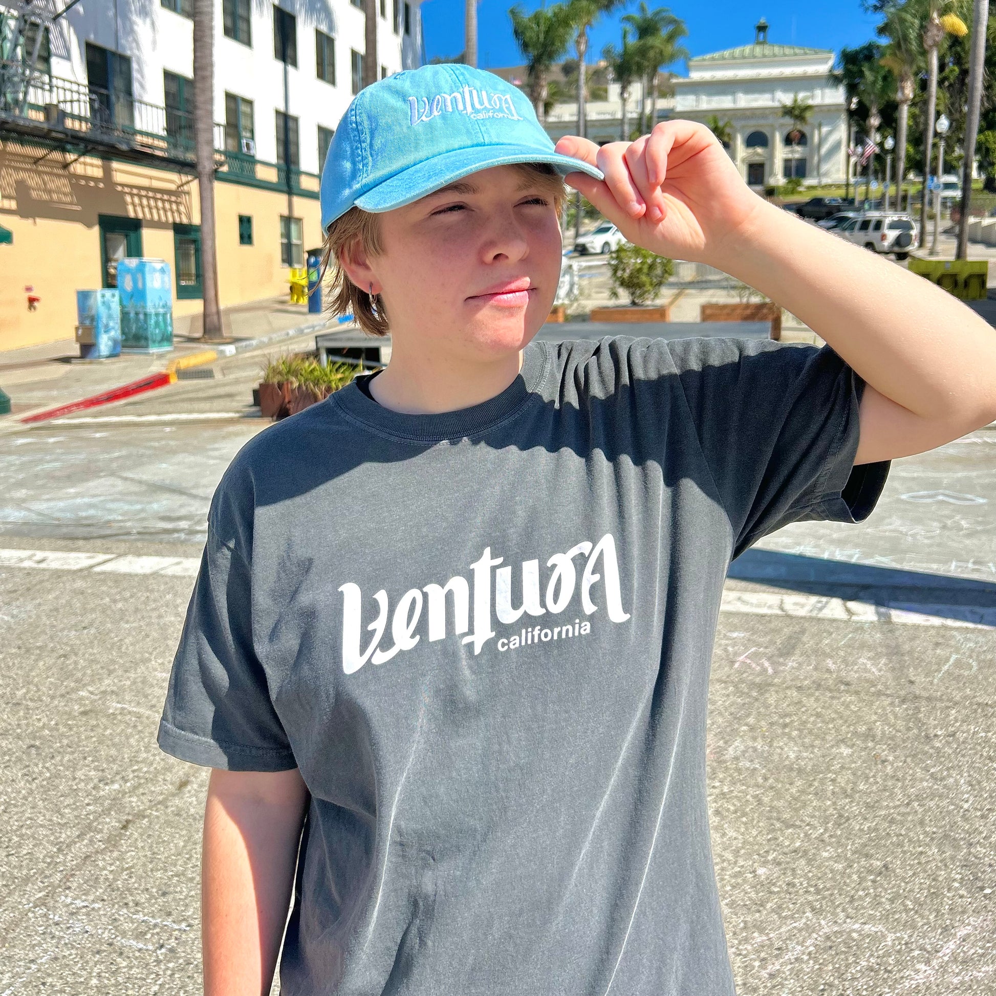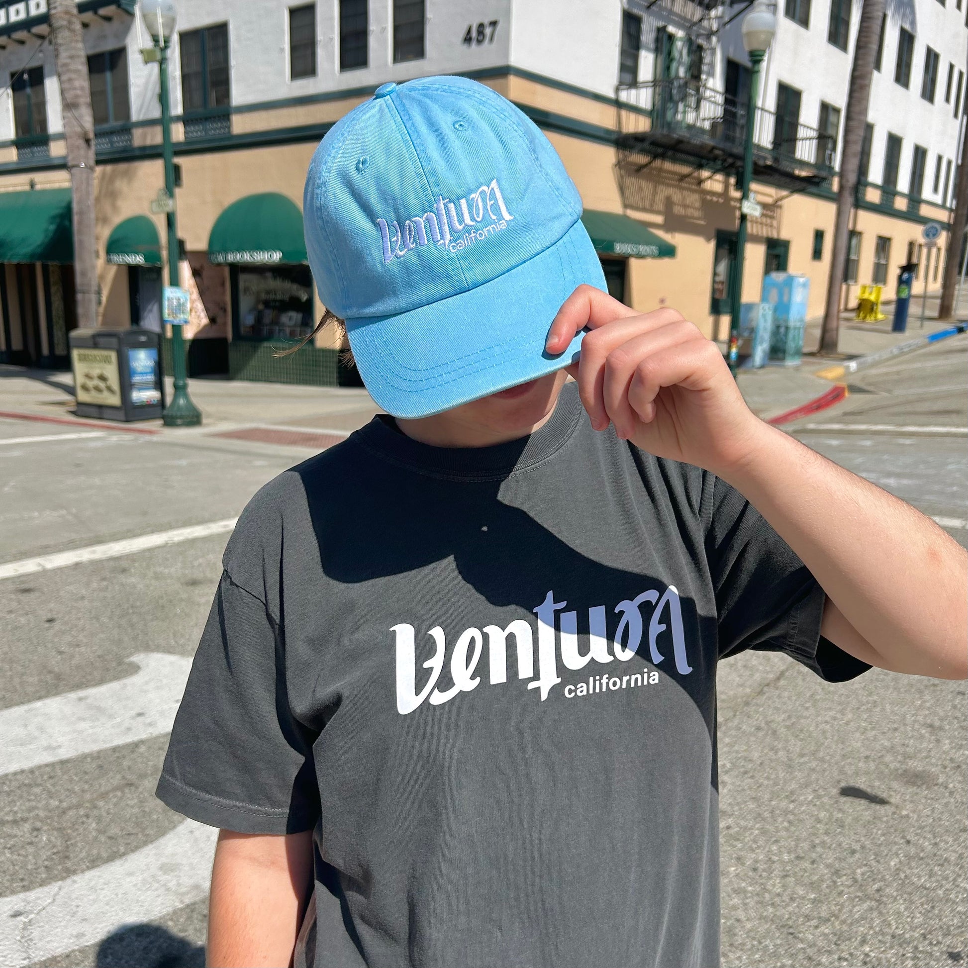 A So Cal classic - the twill Dad Cap, embellished with the Ventura ambigram logo embroidered in white. Features an innovative Cool-Crown mesh lining which promotes cooling and minimizes staining. Shown in Navy and Light Blue.