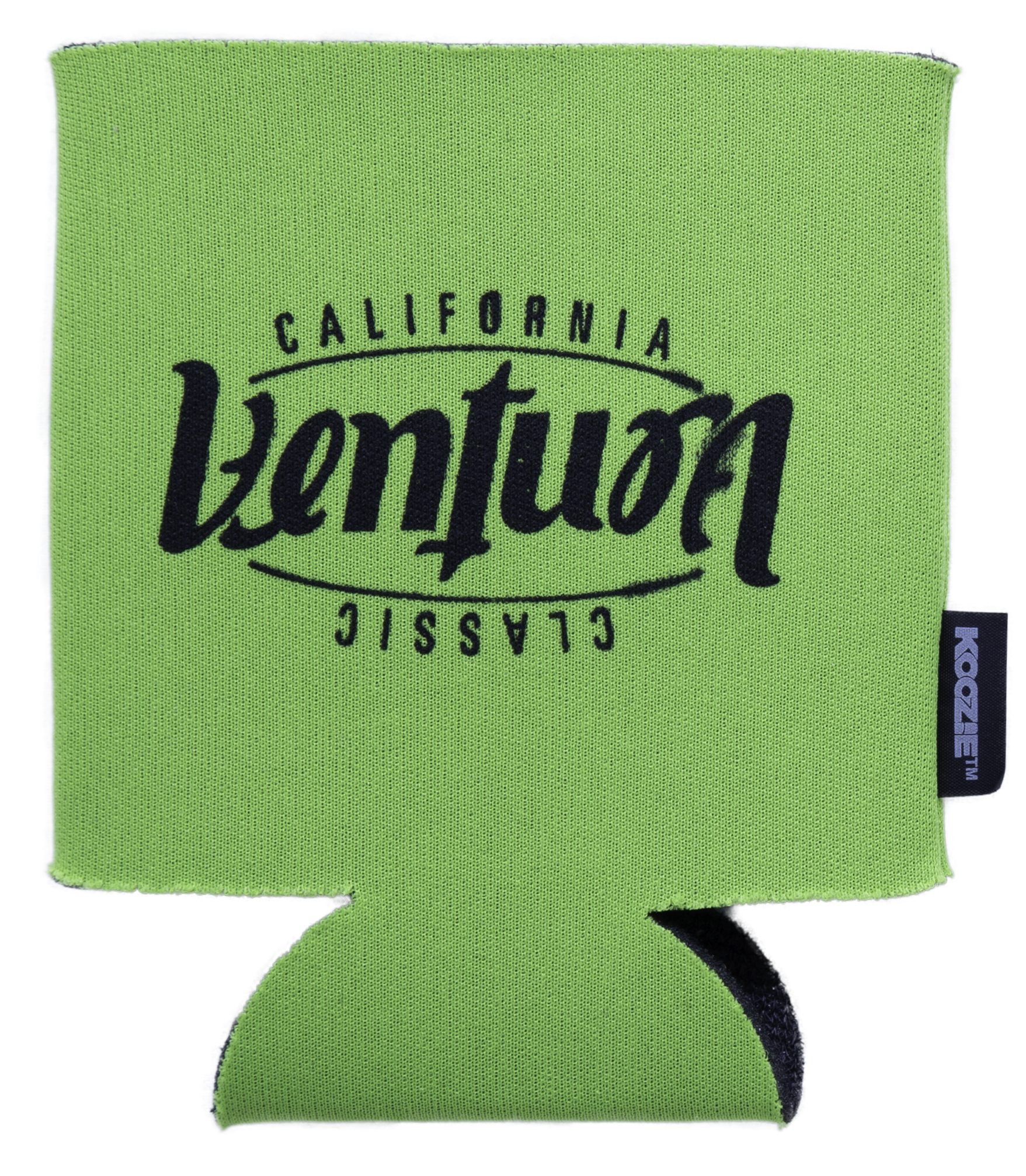 Green & black koozies feature VW van on one side and the Ventura ambigram logo on the other.