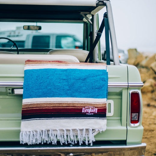 One of our most colorful (and popular) gifts, these Ventura-branded serapes are as warm and cozy as it gets. Perfect for a post beach wrap -- and big enough for two (if you get cozy). Plus, they just look great hanging around the house. A form of fabric art. Material - Fine quality, handwoven, machine washable acrylic/polyester blend.
